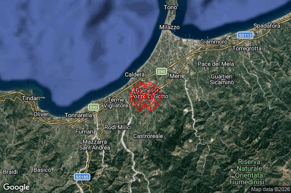 Oggi 29/01/2026 alle ore 00:45:31 (ora locale Italiana – 23:45:31 UTC) è stato registrato un Debole #Terremoto di magnitudo M2.3 con epicentro “1 km W Barcellona Pozzo di Gotto (ME)” Latitudine: 38.14 Longitudine: 15.21 mostrato sulla mappa.