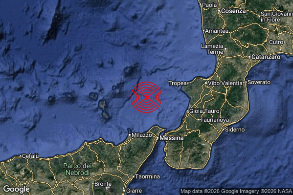 N.B. I valori della magnitudo e delle coordinate rappresentano la migliore stima con i dati ufficiali a disposizione. Eventuali nuovi dati o ulteriori analisi potrebbero far variare tali stime.