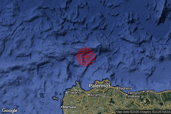 N.B. I valori della magnitudo e delle coordinate rappresentano la migliore stima con i dati ufficiali a disposizione. Eventuali nuovi dati o ulteriori analisi potrebbero far variare tali stime.