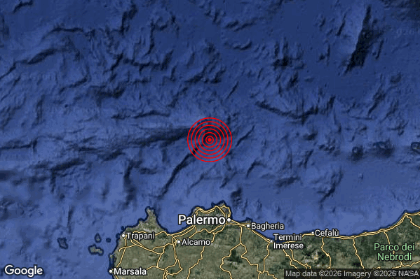 N.B. I valori della magnitudo e delle coordinate rappresentano la migliore stima con i dati ufficiali a disposizione. Eventuali nuovi dati o ulteriori analisi potrebbero far variare tali stime.