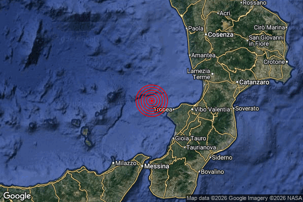Oggi 05/02/2026 alle ore 04:15:07 (ora locale Italiana – 03:15:07 UTC) è stato registrato un Debole #Terremoto di magnitudo M2.6 con epicentro “Tirreno Meridionale (MARE)” Latitudine: 38.75 Longitudine: 15.66 mostrato sulla mappa.