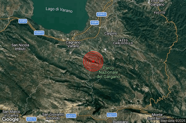Oggi 06/02/2026 alle ore 15:35:16 (ora locale Italiana – 14:35:16 UTC) è stato registrato un Debole #Terremoto di magnitudo M2.5 con epicentro “5 km SE Cagnano Varano (FG)” Latitudine: 41.8 Longitudine: 15.82 mostrato sulla mappa.