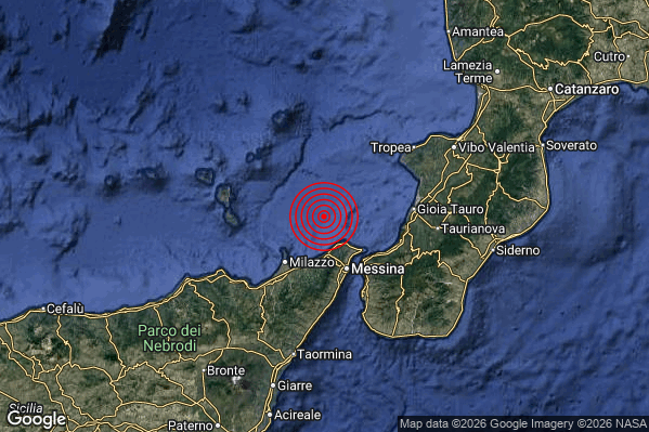 N.B. I valori della magnitudo e delle coordinate rappresentano la migliore stima con i dati ufficiali a disposizione. Eventuali nuovi dati o ulteriori analisi potrebbero far variare tali stime.