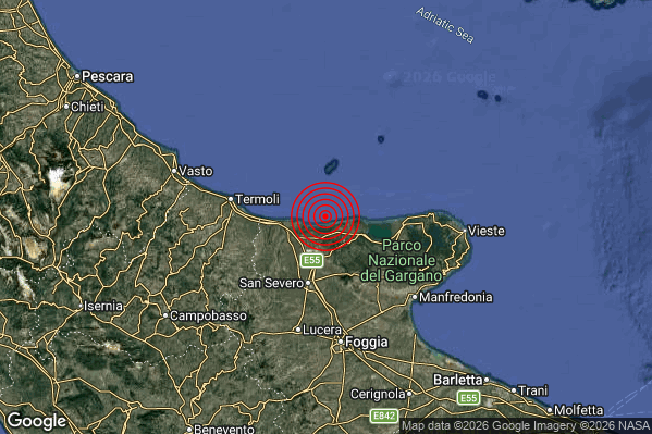 Oggi 08/02/2026 alle ore 11:13:41 (ora locale Italiana – 10:13:41 UTC) è stato registrato un Debole #Terremoto di magnitudo M2.7 con epicentro “Costa Garganica (Foggia)” Latitudine: 41.94 Longitudine: 15.47 mostrato sulla mappa.