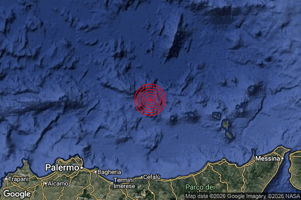 N.B. I valori della magnitudo e delle coordinate rappresentano la migliore stima con i dati ufficiali a disposizione. Eventuali nuovi dati o ulteriori analisi potrebbero far variare tali stime.