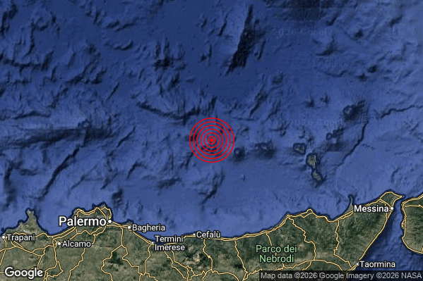 N.B. I valori della magnitudo e delle coordinate rappresentano la migliore stima con i dati ufficiali a disposizione. Eventuali nuovi dati o ulteriori analisi potrebbero far variare tali stime.