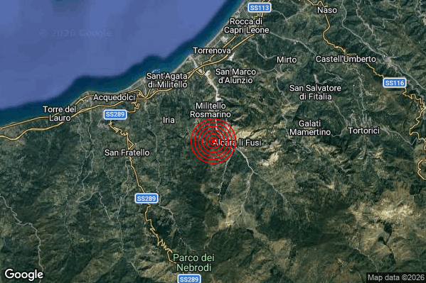 Oggi 12/02/2026 alle ore 06:34:42 (ora locale Italiana – 05:34:42 UTC) è stato registrato un Lieve #Terremoto di magnitudo M2.0 con epicentro “2 km W Alcara li Fusi (ME)” Latitudine: 38.02 Longitudine: 14.68 mostrato sulla mappa.