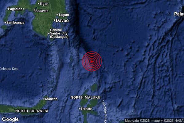 Oggi 13/02/2026 alle ore 15:57:01 (ora locale Italiana – 14:57:01 UTC) è stato registrato un Violento #Terremoto di magnitudo M5.9 con epicentro “North of Halmahera Indonesia [Sea: Indonesia]” Latitudine: 4.16 Longitudine: 128.27 mostrato sulla mappa.