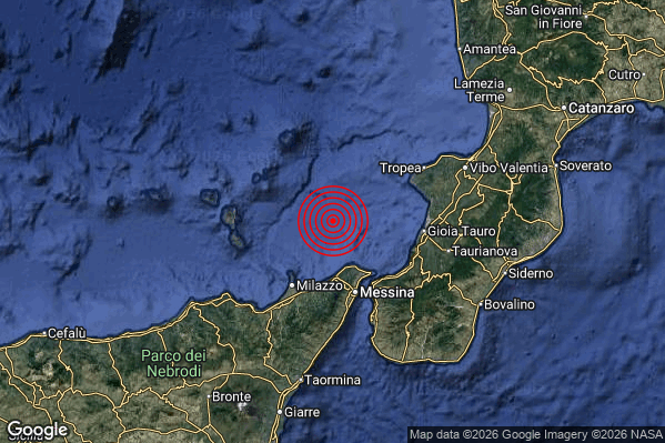 N.B. I valori della magnitudo e delle coordinate rappresentano la migliore stima con i dati ufficiali a disposizione. Eventuali nuovi dati o ulteriori analisi potrebbero far variare tali stime.