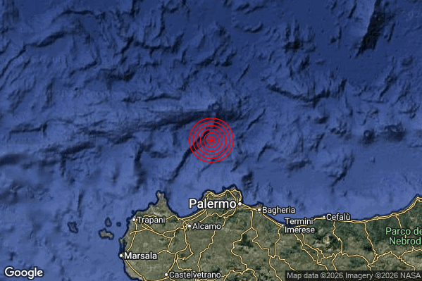N.B. I valori della magnitudo e delle coordinate rappresentano la migliore stima con i dati ufficiali a disposizione. Eventuali nuovi dati o ulteriori analisi potrebbero far variare tali stime.