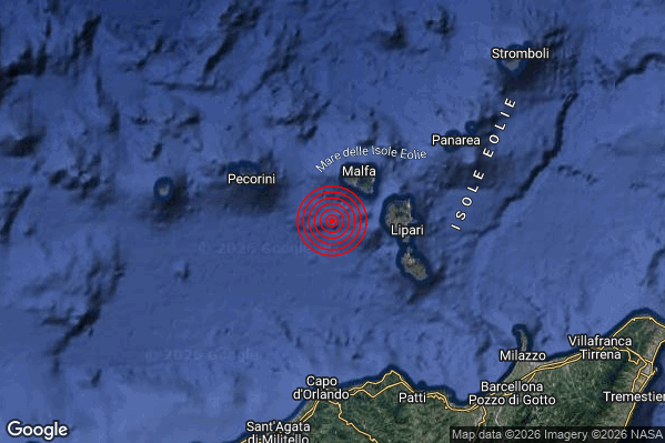 N.B. I valori della magnitudo e delle coordinate rappresentano la migliore stima con i dati ufficiali a disposizione. Eventuali nuovi dati o ulteriori analisi potrebbero far variare tali stime.