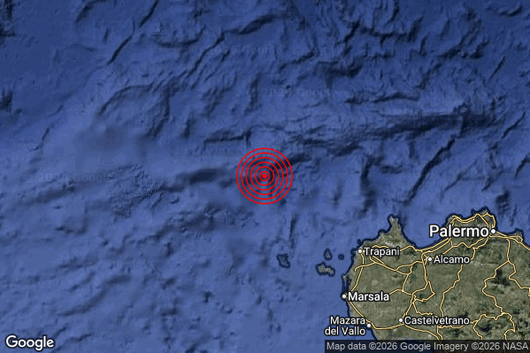 N.B. I valori della magnitudo e delle coordinate rappresentano la migliore stima con i dati ufficiali a disposizione. Eventuali nuovi dati o ulteriori analisi potrebbero far variare tali stime.