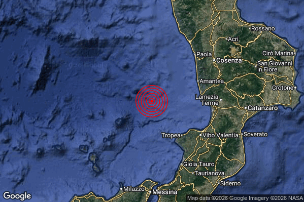 N.B. I valori della magnitudo e delle coordinate rappresentano la migliore stima con i dati ufficiali a disposizione. Eventuali nuovi dati o ulteriori analisi potrebbero far variare tali stime.