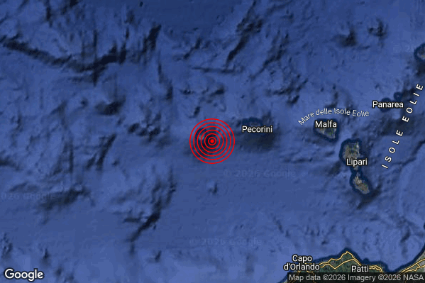 N.B. I valori della magnitudo e delle coordinate rappresentano la migliore stima con i dati ufficiali a disposizione. Eventuali nuovi dati o ulteriori analisi potrebbero far variare tali stime.