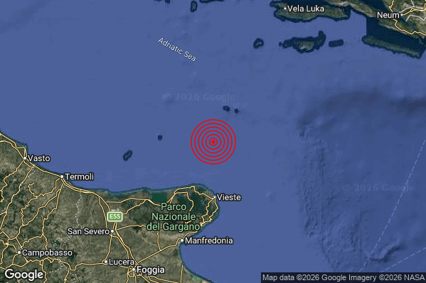 N.B. I valori della magnitudo e delle coordinate rappresentano la migliore stima con i dati ufficiali a disposizione. Eventuali nuovi dati o ulteriori analisi potrebbero far variare tali stime.