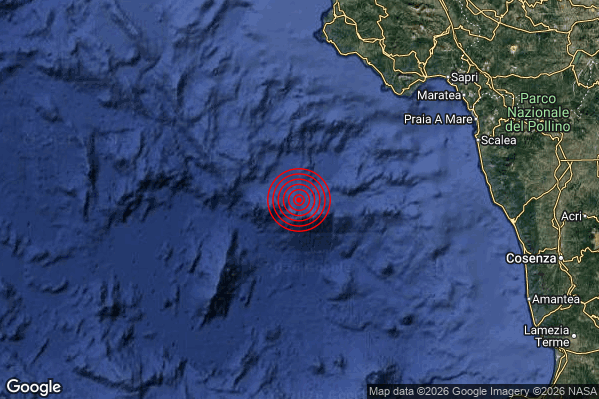 Oggi 25/02/2026 alle ore 03:58:12 (ora locale Italiana – 02:58:12 UTC) è stato registrato un Debole #Terremoto di magnitudo M2.4 con epicentro “Tirreno Meridionale (MARE)” Latitudine: 39.56 Longitudine: 14.81 mostrato sulla mappa.