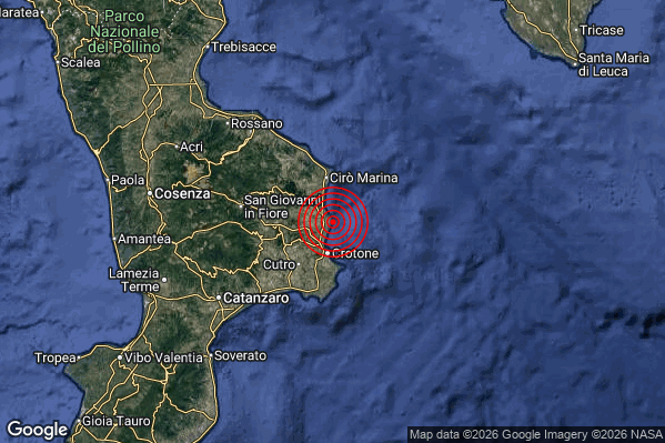 N.B. I valori della magnitudo e delle coordinate rappresentano la migliore stima con i dati ufficiali a disposizione. Eventuali nuovi dati o ulteriori analisi potrebbero far variare tali stime.