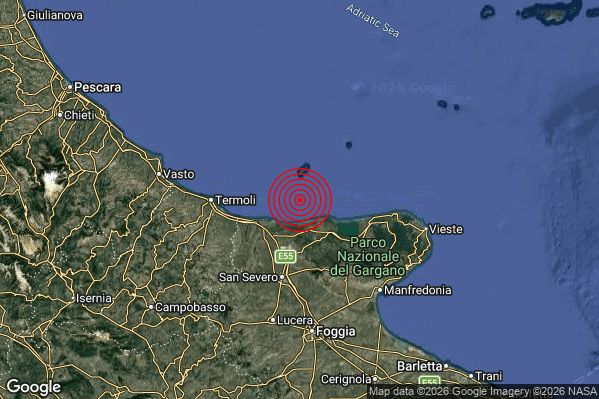 Oggi 26/02/2026 alle ore 08:22:00 (ora locale Italiana – 07:22:00 UTC) è stato registrato un Debole #Terremoto di magnitudo M2.6 con epicentro “Costa Garganica (Foggia)” Latitudine: 42 Longitudine: 15.48 mostrato sulla mappa.
