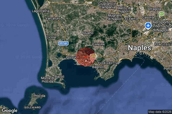 Oggi 28/02/2026 alle ore 11:19:07 (ora locale Italiana – 10:19:07 UTC) è stato registrato un Moderato #Terremoto di magnitudo M3.5 con epicentro “Campi Flegrei” Latitudine: 40.84 Longitudine: 14.14 mostrato sulla mappa.