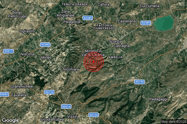 Oggi 05/03/2026 alle ore 18:04:31 (ora locale Italiana – 17:04:31 UTC) è stato registrato un Leggero #Terremoto di magnitudo M3.0 con epicentro “2 km S Militello in Val di Catania (CT)” Latitudine: 37.26 Longitudine: 14.79 mostrato sulla mappa.