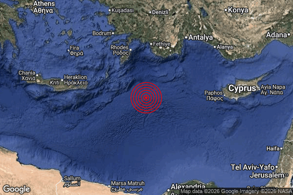 Oggi 06/03/2026 alle ore 06:35:21 (ora locale Italiana – 05:35:21 UTC) è stato registrato un Intenso #Terremoto di magnitudo M4.6 con epicentro “Greece [Sea]” Latitudine: 34.7 Longitudine: 28.92 mostrato sulla mappa.