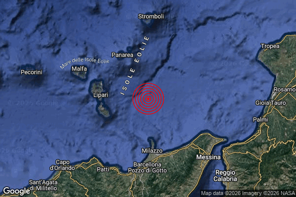 Oggi 06/03/2026 alle ore 23:39:47 (ora locale Italiana – 22:39:47 UTC) è stato registrato un Debole #Terremoto di magnitudo M2.4 con epicentro “Isole Eolie (Messina)” Latitudine: 38.45 Longitudine: 15.22 mostrato sulla mappa.