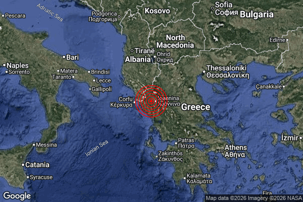 Oggi 08/03/2026 alle ore 04:32:30 (ora locale Italiana – 03:32:30 UTC) è stato registrato un Severo #Terremoto di magnitudo M5.5 con epicentro “Greece [Land]” Latitudine: 39.67 Longitudine: 20.65 mostrato sulla mappa.