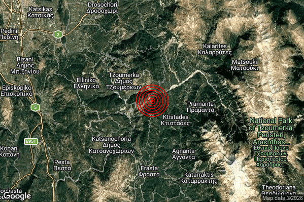 Oggi 08/03/2026 alle ore 15:29:13 (ora locale Italiana – 14:29:13 UTC) è stato registrato un Moderato #Terremoto di magnitudo M3.4 con epicentro “Greece” Latitudine: 39.53 Longitudine: 21.04 mostrato sulla mappa.