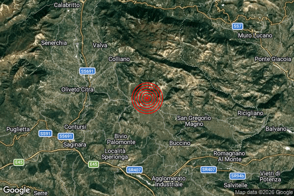 Oggi 13/03/2026 alle ore 09:54:57 (ora locale Italiana – 08:54:57 UTC) è stato registrato un Debole #Terremoto di magnitudo M2.4 con epicentro “4 km NE Palomonte (SA)” Latitudine: 40.68 Longitudine: 15.33 mostrato sulla mappa.