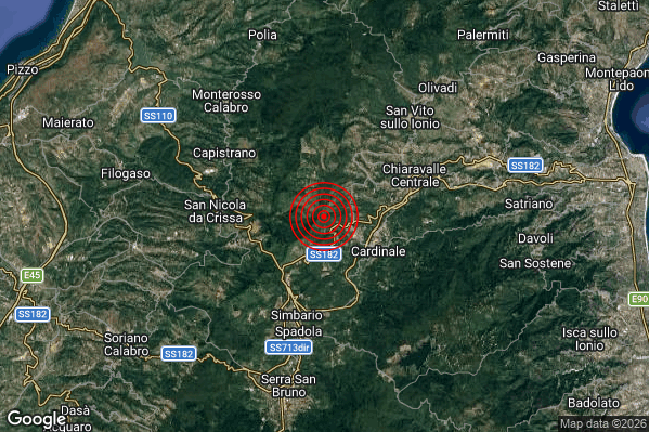 Oggi 13/03/2026 alle ore 10:39:34 (ora locale Italiana – 09:39:34 UTC) è stato registrato un Lieve #Terremoto di magnitudo M2.0 con epicentro “2 km W Torre di Ruggiero (CZ)” Latitudine: 38.66 Longitudine: 16.35 mostrato sulla mappa.