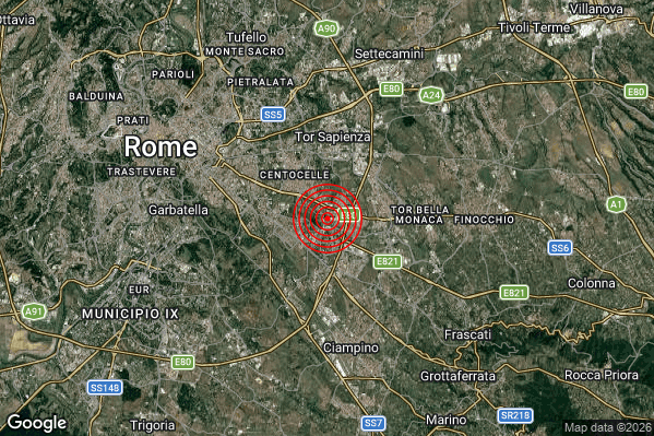 Oggi 14/03/2026 alle ore 22:44:09 (ora locale Italiana – 21:44:09 UTC) è stato registrato un Lieve #Terremoto di magnitudo M2.0 con epicentro “7 km N Ciampino (RM)” Latitudine: 41.86 Longitudine: 12.59 mostrato sulla mappa.