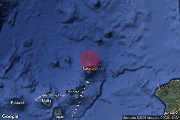 Oggi 14/03/2026 alle ore 23:08:31 (ora locale Italiana – 22:08:31 UTC) è stato registrato un Debole #Terremoto di magnitudo M2.4 con epicentro “Isole Eolie (Messina)” Latitudine: 38.87 Longitudine: 15.23 mostrato sulla mappa.