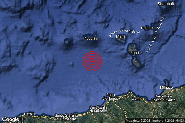 N.B. I valori della magnitudo e delle coordinate rappresentano la migliore stima con i dati ufficiali a disposizione. Eventuali nuovi dati o ulteriori analisi potrebbero far variare tali stime.