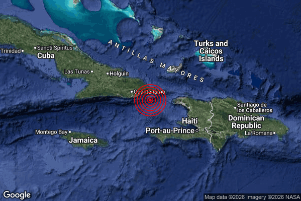 Oggi 17/03/2026 alle ore 05:28:28 (ora locale Italiana – 04:28:28 UTC) è stato registrato un Violento #Terremoto di magnitudo M5.9 con epicentro “Cuba region [Sea: Cuba]” Latitudine: 19.8 Longitudine: -74.4 mostrato sulla mappa.