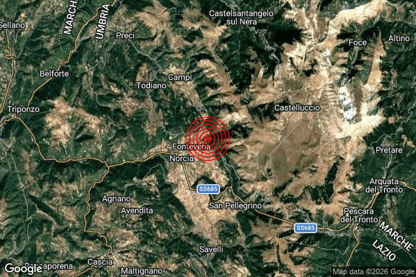 Oggi 18/03/2026 alle ore 16:57:42 (ora locale Italiana – 15:57:42 UTC) è stato registrato un Lieve #Terremoto di magnitudo M2.0 con epicentro “3 km NE Norcia (PG)” Latitudine: 42.81 Longitudine: 13.12 mostrato sulla mappa.