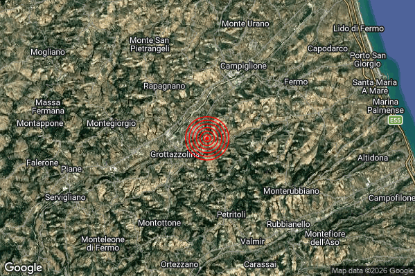 Oggi 20/03/2026 alle ore 21:30:09 (ora locale Italiana – 20:30:09 UTC) è stato registrato un Lieve #Terremoto di magnitudo M2.2 con epicentro “3 km E Grottazzolina (FM)” Latitudine: 43.12 Longitudine: 13.63 mostrato sulla mappa.
