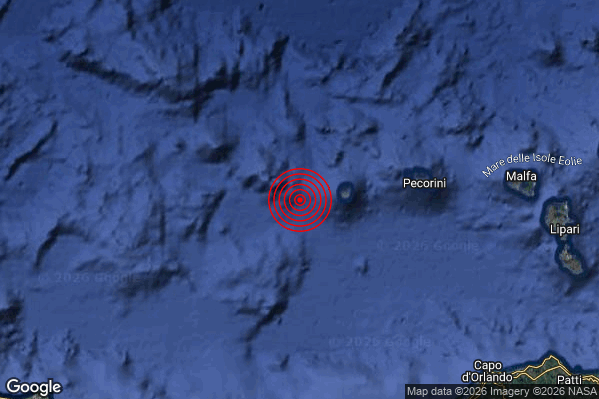Oggi 21/03/2026 alle ore 02:55:41 (ora locale Italiana – 01:55:41 UTC) è stato registrato un Debole #Terremoto di magnitudo M2.7 con epicentro “Isole Eolie (Messina)” Latitudine: 38.53 Longitudine: 14.22 mostrato sulla mappa.