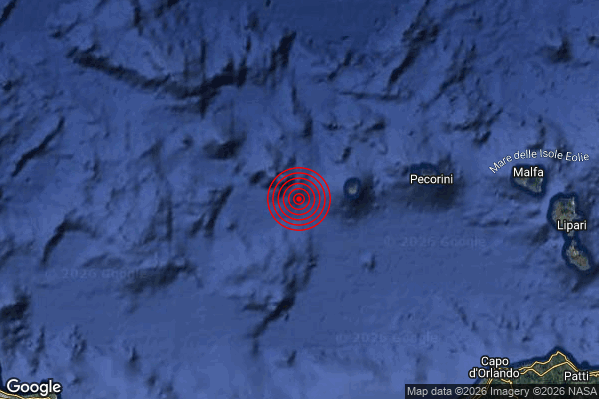 N.B. I valori della magnitudo e delle coordinate rappresentano la migliore stima con i dati ufficiali a disposizione. Eventuali nuovi dati o ulteriori analisi potrebbero far variare tali stime.