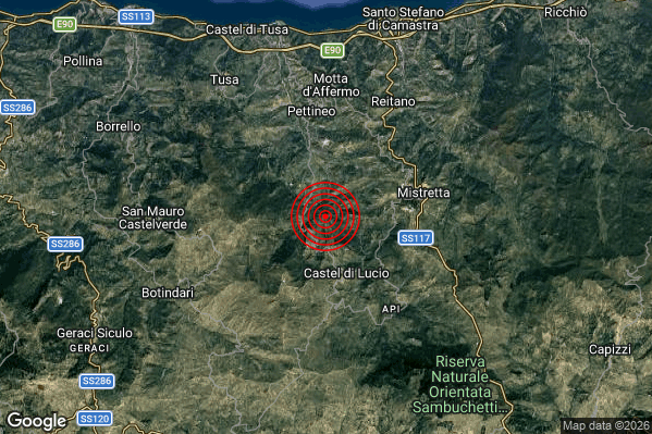 Oggi 21/03/2026 alle ore 08:31:06 (ora locale Italiana – 07:31:06 UTC) è stato registrato un Leggero #Terremoto di magnitudo M2.8 con epicentro “3 km NW Castel di Lucio (ME)” Latitudine: 37.92 Longitudine: 14.3 mostrato sulla mappa.