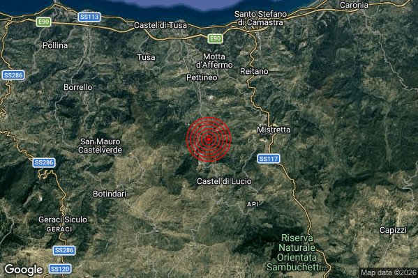 Oggi 21/03/2026 alle ore 19:01:06 (ora locale Italiana – 18:01:06 UTC) è stato registrato un Lieve #Terremoto di magnitudo M2.0 con epicentro “4 km N Castel di Lucio (ME)” Latitudine: 37.92 Longitudine: 14.3 mostrato sulla mappa.