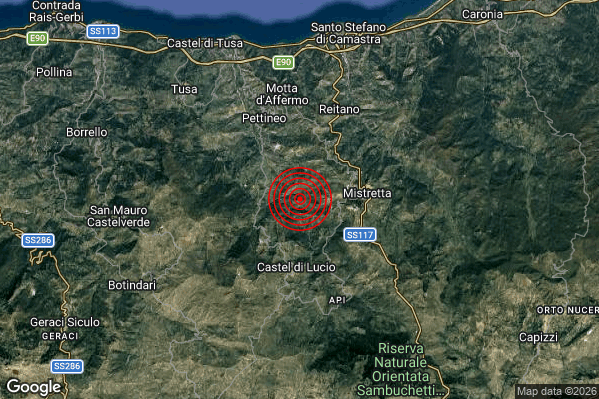 Oggi 21/03/2026 alle ore 19:15:58 (ora locale Italiana – 18:15:58 UTC) è stato registrato un Leggero #Terremoto di magnitudo M3.2 con epicentro “4 km N Castel di Lucio (ME)” Latitudine: 37.92 Longitudine: 14.32 mostrato sulla mappa.