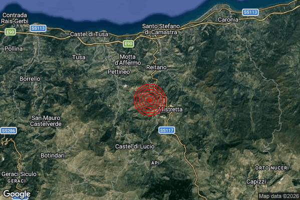 Oggi 21/03/2026 alle ore 20:10:16 (ora locale Italiana – 19:10:16 UTC) è stato registrato un Debole #Terremoto di magnitudo M2.7 con epicentro “3 km W Mistretta (ME)” Latitudine: 37.94 Longitudine: 14.33 mostrato sulla mappa.