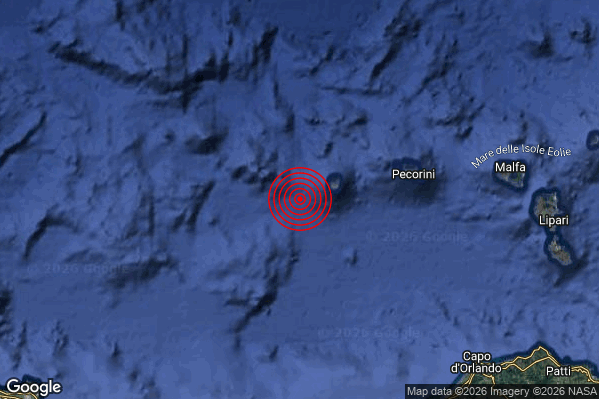 Oggi 26/03/2026 alle ore 22:29:25 (ora locale Italiana – 21:29:25 UTC) è stato registrato un Debole #Terremoto di magnitudo M2.4 con epicentro “Isole Eolie (Messina)” Latitudine: 38.51 Longitudine: 14.25 mostrato sulla mappa.