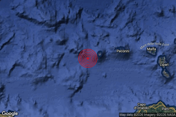 N.B. I valori della magnitudo e delle coordinate rappresentano la migliore stima con i dati ufficiali a disposizione. Eventuali nuovi dati o ulteriori analisi potrebbero far variare tali stime.