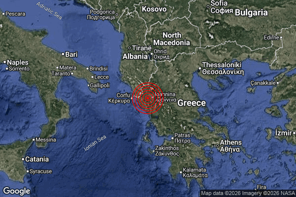 Oggi 03/04/2026 alle ore 08:51:16 (ora locale Italiana – 06:51:16 UTC) è stato registrato un Distinto #Terremoto di magnitudo M4.2 con epicentro “Greece [Land]” Latitudine: 39.63 Longitudine: 20.62 mostrato sulla mappa.