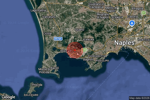 Oggi 03/04/2026 alle ore 09:59:38 (ora locale Italiana – 07:59:38 UTC) è stato registrato un Lieve #Terremoto di magnitudo M2.1 con epicentro “Campi Flegrei” Latitudine: 40.84 Longitudine: 14.13 mostrato sulla mappa.