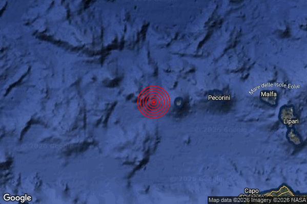 N.B. I valori della magnitudo e delle coordinate rappresentano la migliore stima con i dati ufficiali a disposizione. Eventuali nuovi dati o ulteriori analisi potrebbero far variare tali stime.