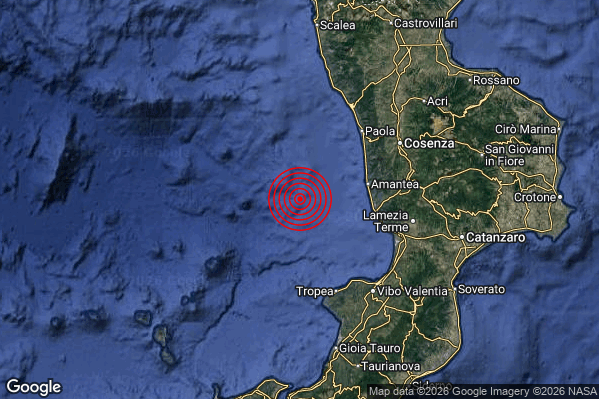 Oggi 06/04/2026 alle ore 05:26:25 (ora locale Italiana – 03:26:25 UTC) è stato registrato un Moderato #Terremoto di magnitudo M3.3 con epicentro “Costa Calabra nord-occidentale (Cosenza)” Latitudine: 39.07 Longitudine: 15.7 mostrato sulla mappa.