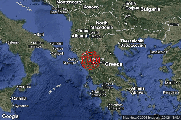 Oggi 06/04/2026 alle ore 06:20:48 (ora locale Italiana – 04:20:48 UTC) è stato registrato un Intenso #Terremoto di magnitudo M4.5 con epicentro “Greece [Land]” Latitudine: 39.7 Longitudine: 20.87 mostrato sulla mappa.