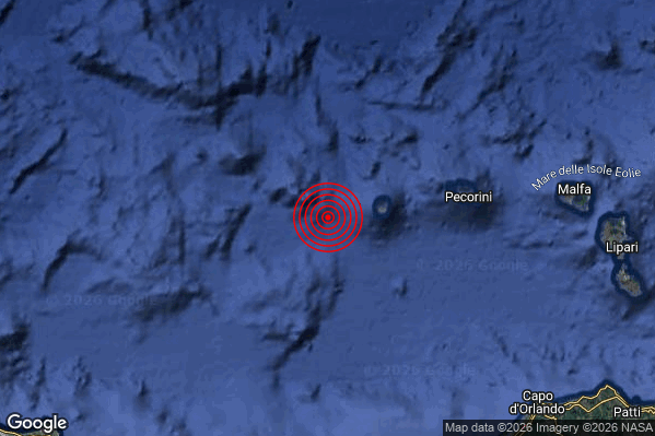 N.B. I valori della magnitudo e delle coordinate rappresentano la migliore stima con i dati ufficiali a disposizione. Eventuali nuovi dati o ulteriori analisi potrebbero far variare tali stime.